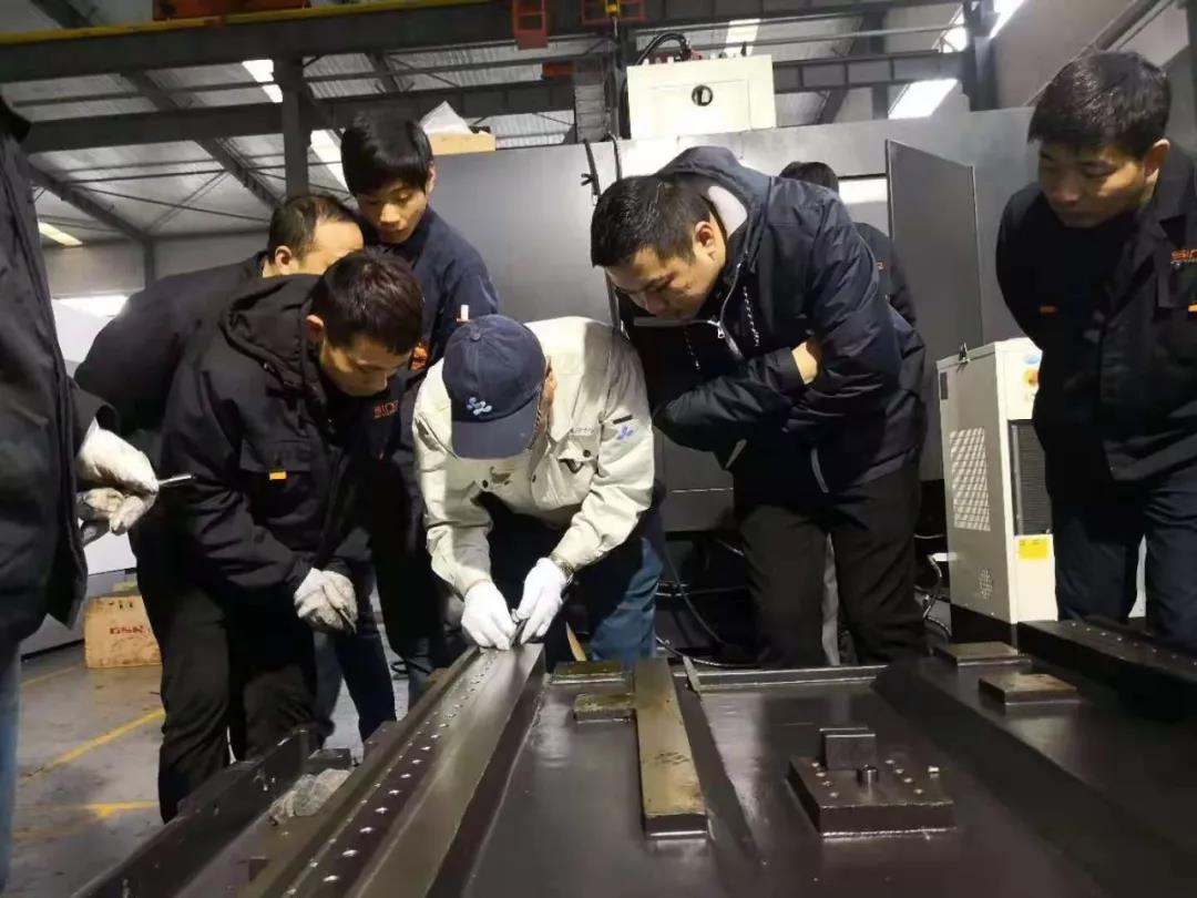 從零件清洗、檢驗(yàn)到裝配,親身授課,帶領(lǐng)我司人員完成整個(gè) 機(jī)床的裝配過程。